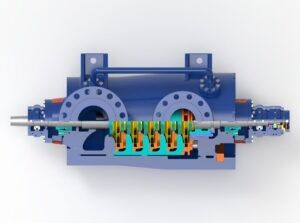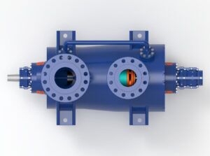 Trillium Flow Technologies updated MESB pump range builds on the engineering excellence, innovation, and heritage of our Gabbioneta Pumps® and Termomeccanica Pompe brands. Our expertise in designing and manufacturing BB5 pumps dates back to the 1970s, with hundreds of units installed worldwide. This API-compliant BB5 pump range is a radially split, multi-stage, between-bearings, centerline-mounted pump with either a single or double suction first stage impeller for reduced NPSHr. The MESB has an inline impeller arrangement to minimise bearing span, and provide a more compact design. The pump range is available with bolted or shear ring end cover arrangements.