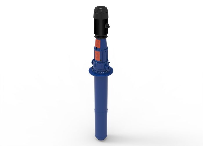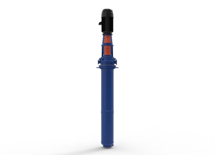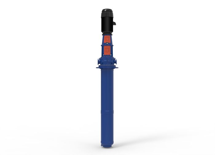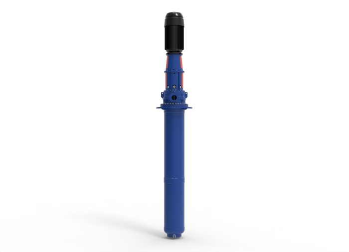 Locating the discharge nozzle above the foundation floor or in the suction can is possible. The coupling between pump and motor can be elastic or rigid. In the elastic coupling design, the axial thrust bearing assembly is located on top of the discharge head.